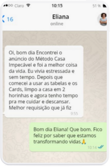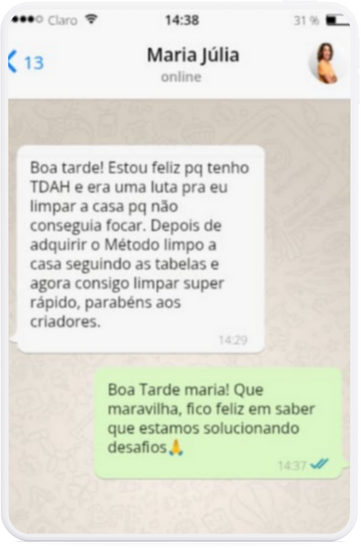 Se você aplicar o método e não sentir mais leveza, organização e motivação em sua rotina, devolvemos 100% do seu investimento.